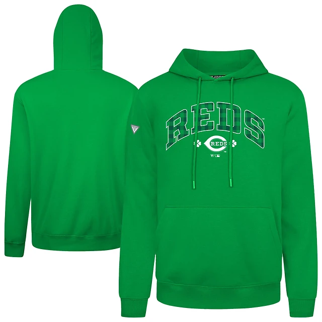 Men's Levelwear Green Cincinnati Reds St. Patrick's Day Podium Plaid Pullover Hoodie