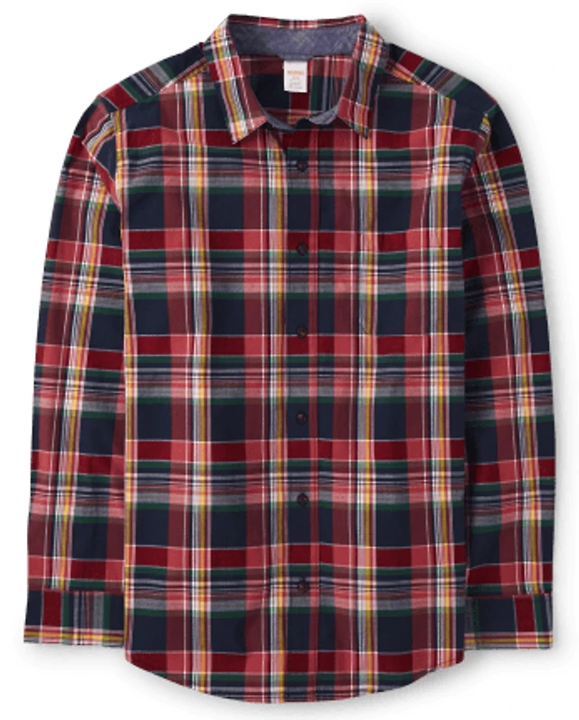 Mens Matching Family Plaid Poplin Button Up Shirt - Apple Orchard