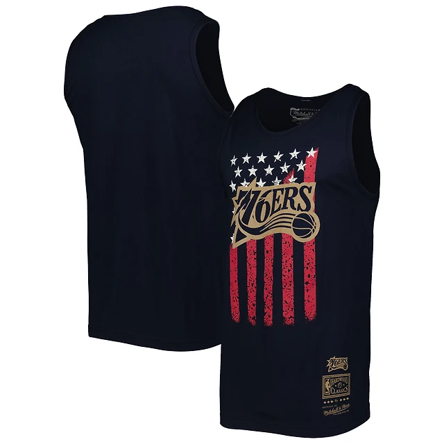 Men's Mitchell & Ness Navy Philadelphia 76ers Hardwood Classics Americana Stars and Stripes Tank Top