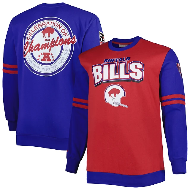 Men's Mitchell & Ness Red/Royal Buffalo Bills Big Tall Celebration of Champions Pullover Sweatshirt