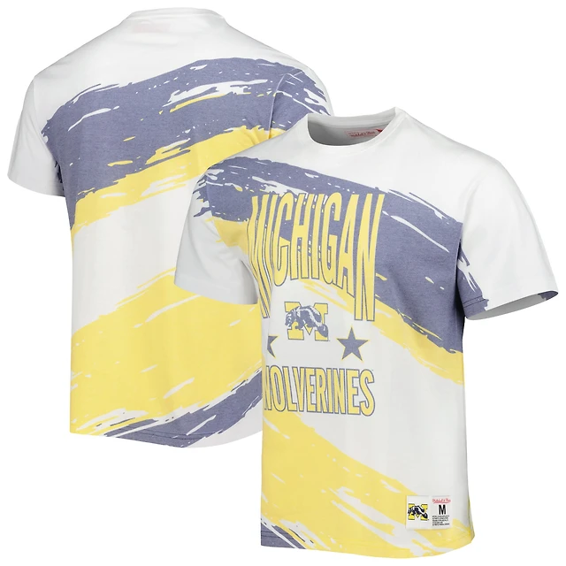 Men's Mitchell & Ness White Michigan Wolverines Paintbrush Sublimated T-Shirt