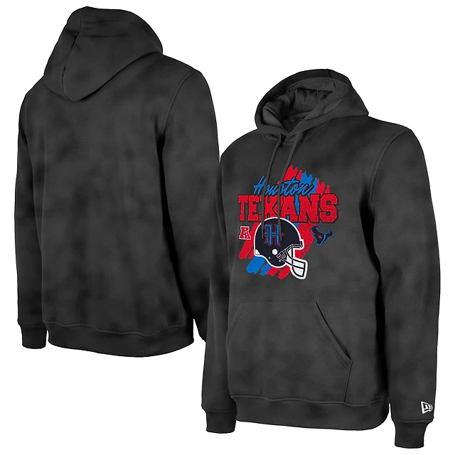 Men's New Era Black Houston Texans Identity Helmet Enzyme Washed Pullover Hoodie