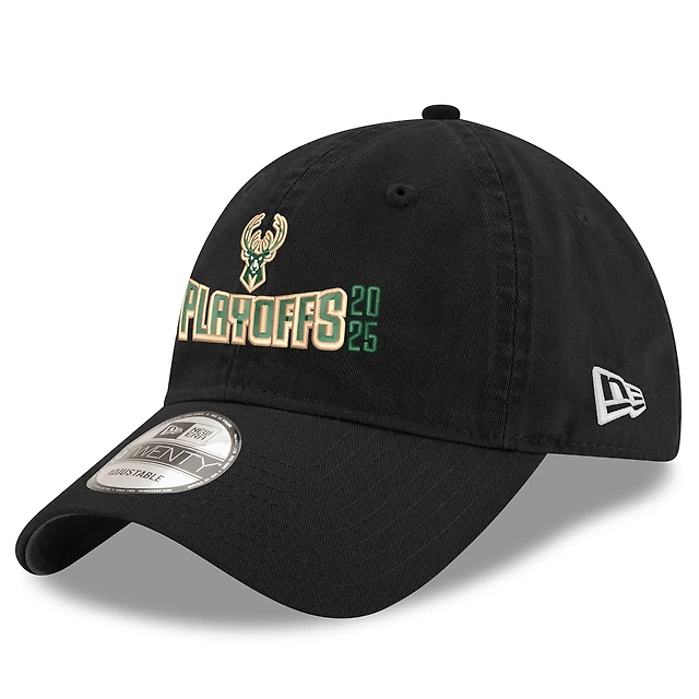 Men's New Era Black Milwaukee Bucks 2025 NBA Playoffs 9TWENTY Adjustable Hat