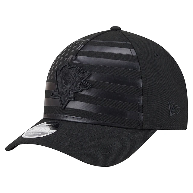 Men's New Era Black Pittsburgh Penguins Game Day Stealth Flag 9FORTY A-Frame Adjustable Hat