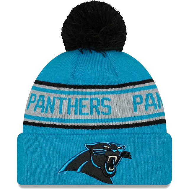 Men's New Era Blue Carolina Panthers Repeat - Cuffed Knit Hat with Pom