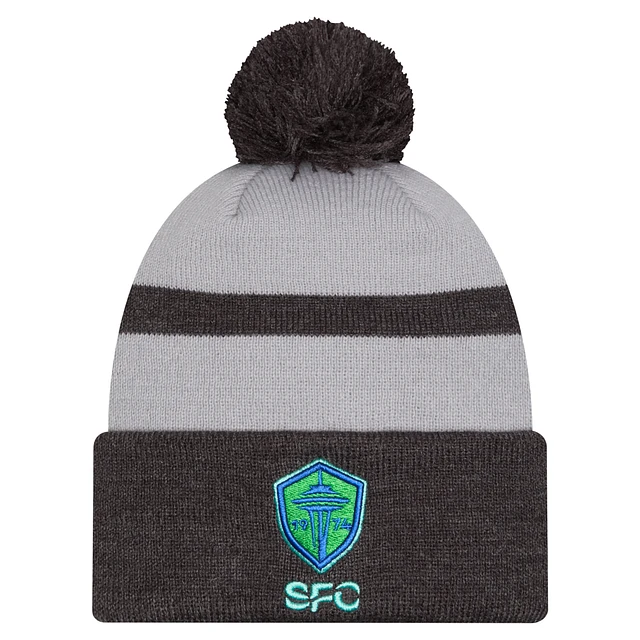Men's New Era Gray Seattle Sounders FC 2025 Kickoff Cuffed Knit Hat with Pom