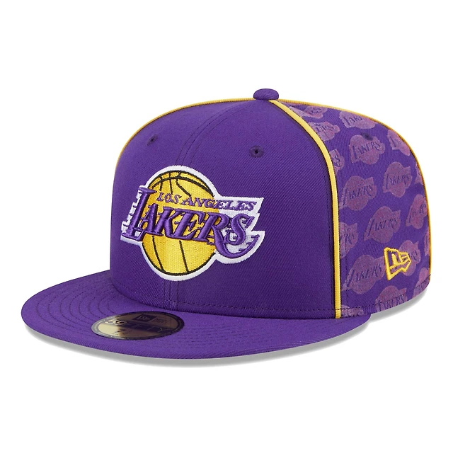 Men's New Era Purple Los Angeles Lakers Piped & Flocked 59Fifty Fitted Hat