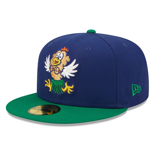Men's New Era Royal/Green Hampshire Fisher Cats Coconut Chicken Tender Theme Night 59FIFTY Fitted Hat
