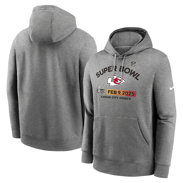 Men's Nike Heather Gray Kansas City Chiefs Super Bowl LIX Fleece Pullover Hoodie