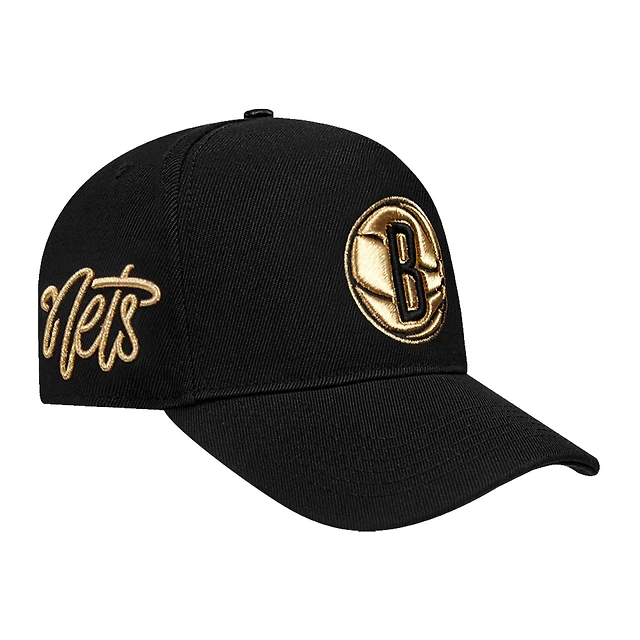 Men's Pro Standard Black Brooklyn Nets Metallic Logo Pinch Front Adjustable Hat