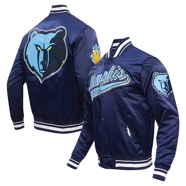 Men's Pro Standard Navy Memphis Grizzlies Script Tail Full-Snap Satin Varsity Jacket