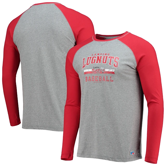 Men's Red/Heathered Gray Lansing Lugnuts Long Sleeve Baseball T-Shirt