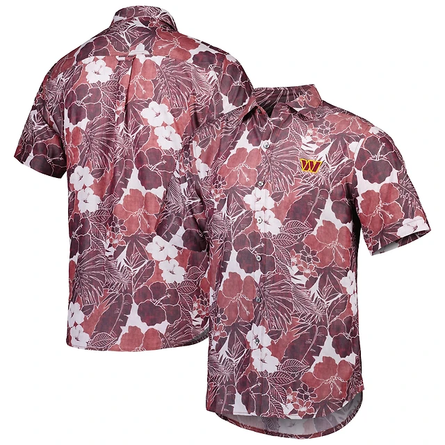 Men's Tommy Bahama Burgundy Washington Commanders Coconut Point Playa Floral Camp IslandZone Button-Up Shirt