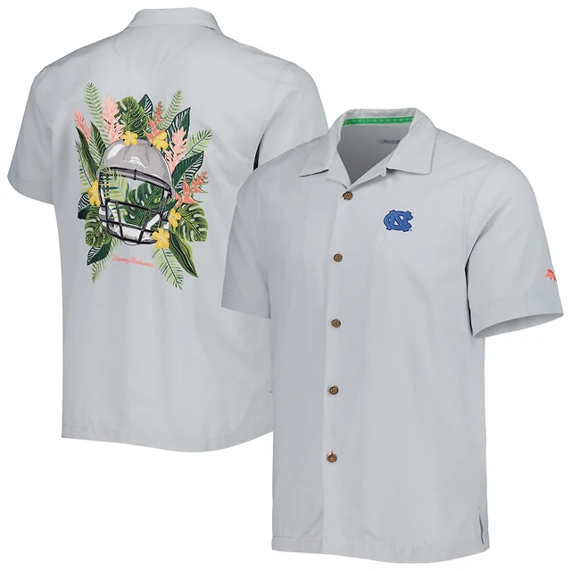 Men's Tommy Bahama Gray North Carolina Tar Heels Coconut Point Frondly Fan Camp IslandZone Button-Up Shirt