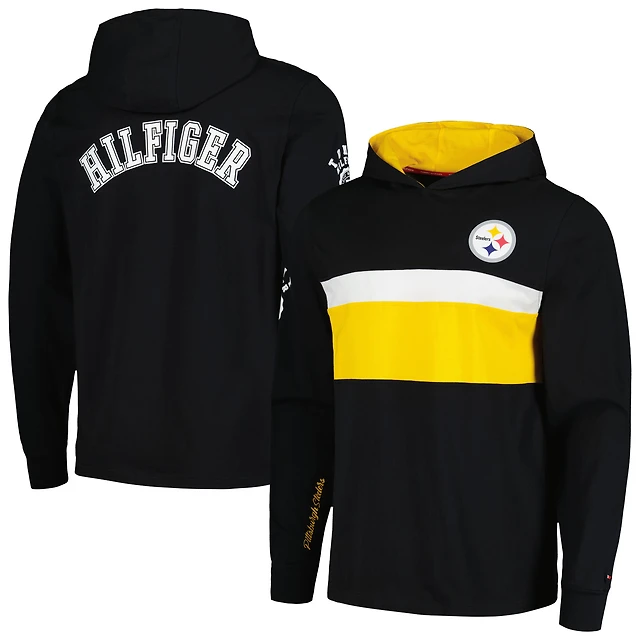 Men's Tommy Hilfiger Black Pittsburgh Steelers Morgan Long Sleeve Hoodie T-Shirt