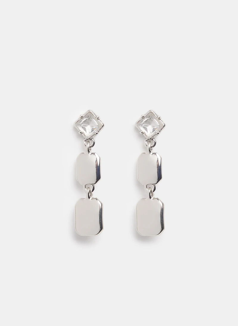 Elegant and contemporary for daytime events, dinners or special occasions, these earrings bring a sleek, sparkling accent to any look. TieredMetal squares Crystal at top Rhodium-platedPost-stud fastening Does not contain lead, nickel or cadmium