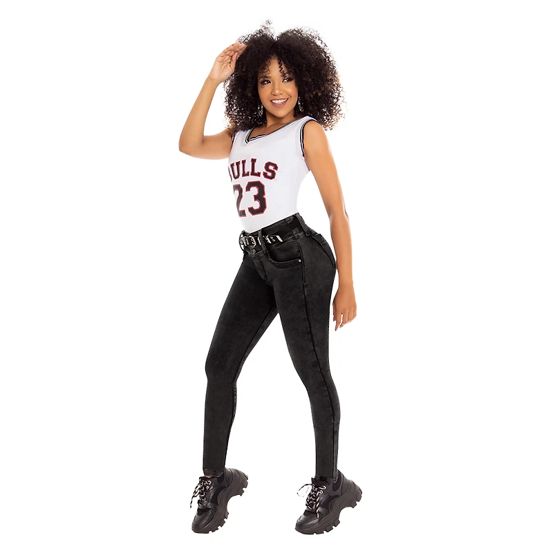 These three-button mid-waist, butt-lifting Colombian jeans, help control those unwanted rolls, highlighting the curves, flattening the abdomen, and shaping the legs. Our jeans will give your buttocks the round natural look you have always dreamed of (accessories not included).
