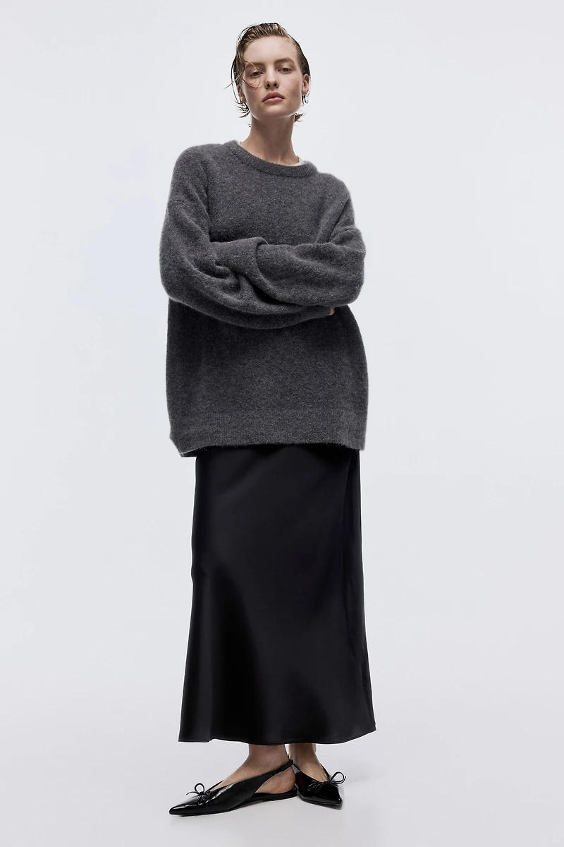 Midi skirt in softly draped woven fabric. Concealed, elasticized waistband and a gently flared hem. Unlined.