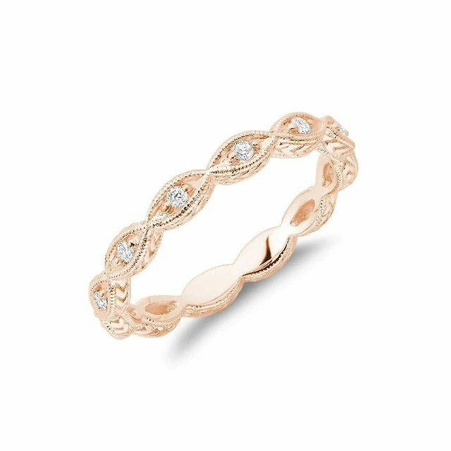 Milgrain Marquise Diamond Stackable Ring Rose Gold