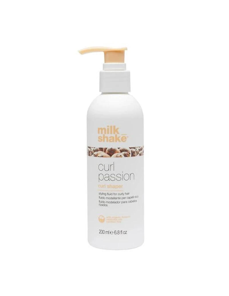 Milkshake Curl Passion Curl Shaper - 200ml Ideal for anyone with curly and wavy hair to give softness and manageability without weighing hair down. Makes curls bouncy, flexible and long-lasting. Milkshake Curl Passion Curl Shaper is a styling fluid designed for curly hair, perfect for creating defined, separated curls. It enhances the natural shape of curls while perfecting softer waves. The special formula tames frizz, protects hair color, and leaves hair radiant and vibrant. Use Apply to towel-dried hair and style as desired
