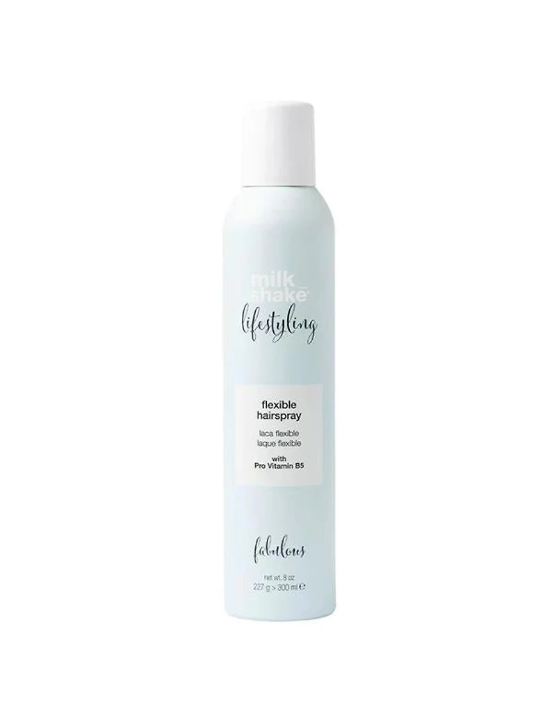 Milkshake Lifestyling Flexible Hold Hairspray - 300ml The Milkshake Lifestyling Flexible Hold Hairspray is a medium-hold styling spray that provides natural, flexible support for any hairstyle. It adds body and shine while allowing for movement and touchable hold. Enriched with Pro Vitamin B5, it locks in moisture for lasting hydration and includes heat protection along with anti-frizz and anti-static benefits, ensuring a smooth, polished finish that stays looking fresh throughout the day. Use