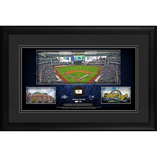 Milwaukee Brewers Framed 10" x 18" Stadium Panoramic Collage with a Piece of Game-Used Baseball - Limited Edition of 500