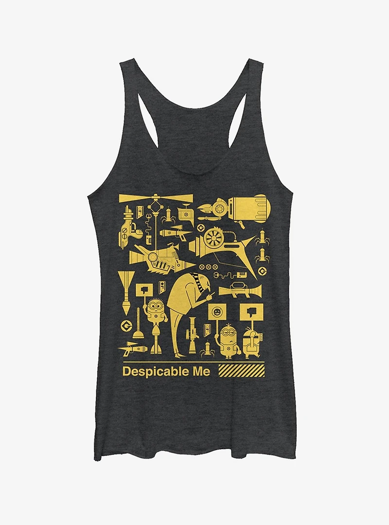 Gru can't take over the world without the help of his Minions and the Despicable Me 3 Minion Worker Strike Women's Racerback Tank Top. The Minions are portrayed holding signs and protesting in Gru's lab on this funny relaxed-fit Despicable Me tank top.
