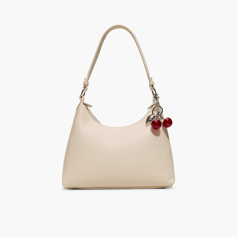 Mirelle features a softly curved shoulder silhouette that sits comfortably under the arm, with a slightly roomier interior for everyday essentials. Clean and classic at first glance, it’s finished with a playful cherry charm that adds just the right pop of personality. A timeless staple with a sweet twist.