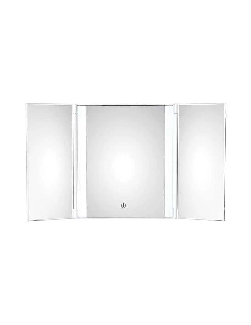 Fin, compact et équipé d'ampoules LED, ce miroir cosmétique LED est l'outil idéal pour une application impeccable de vos cosmétiques. Ses trois panneaux offrent de meilleurs angles, plus de détails et une application optimisée, tandis que les multiples réglages d'éclairage LED s'adaptent à l'éclairage ambiant. Son support réglable facilite le choix de la vue idéale.