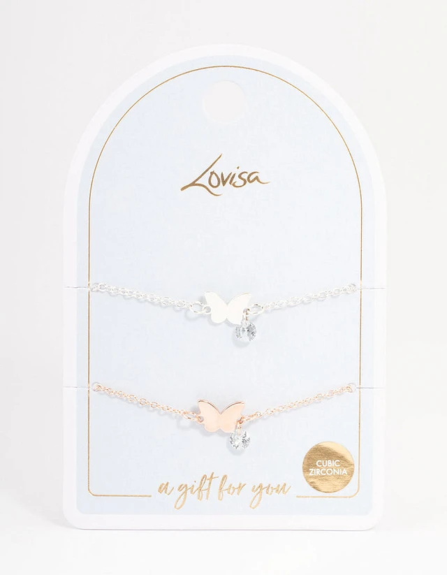Mixed Metal Cubic Zirconia Butterfly Bracelet Pack