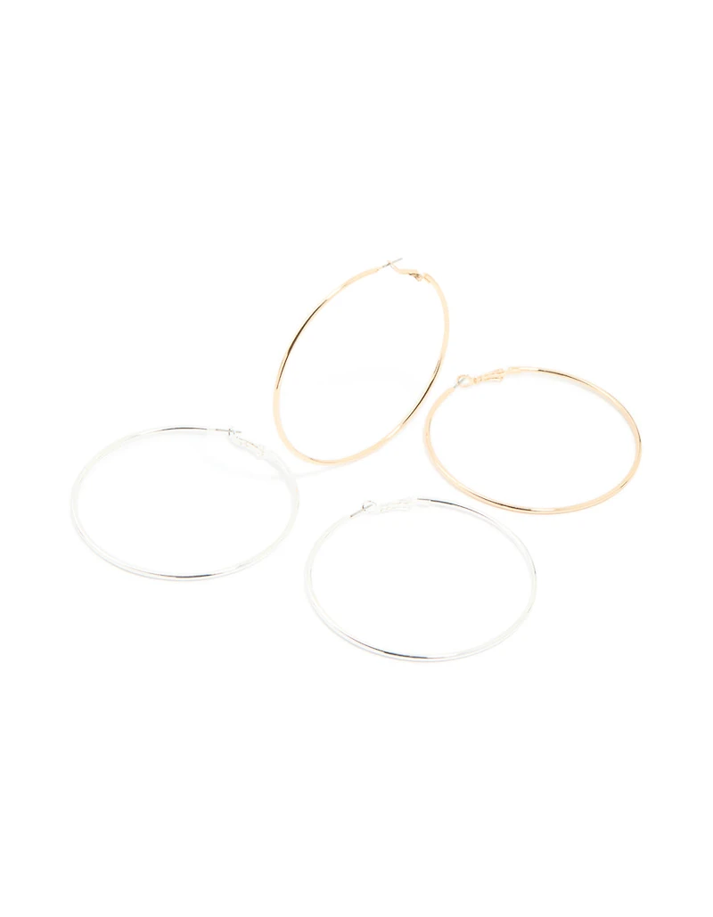 Mixed Metal Large Hoop Earrings 2-Pack