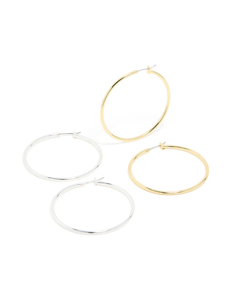 Mixed Metal Plated Large Thin Hoop Earrings 2-PackMixed Metal Plated Large Thin Hoop Earrings 2-PackMixed Metal Plated Large Thin Hoop Earrings 2-Pack