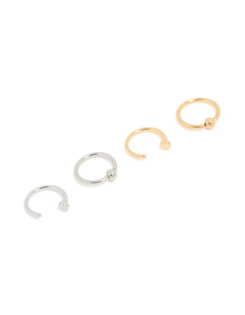 Mixed Metal Plated Surgical Steel Open & Ball Nose Rings 4-PackMixed Metal Plated Surgical Steel Open & Ball Nose Rings 4-PackMixed Metal Plated Surgical Steel Open & Ball Nose Rings 4-Pack