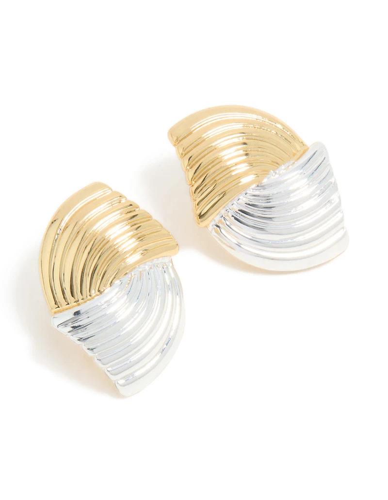 Mixed Metal Plated Wavy Ribbed Stud Earrings