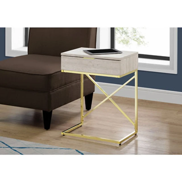 Monarch Modern Rectangular Accent End Table with Storage - Beige/Gold