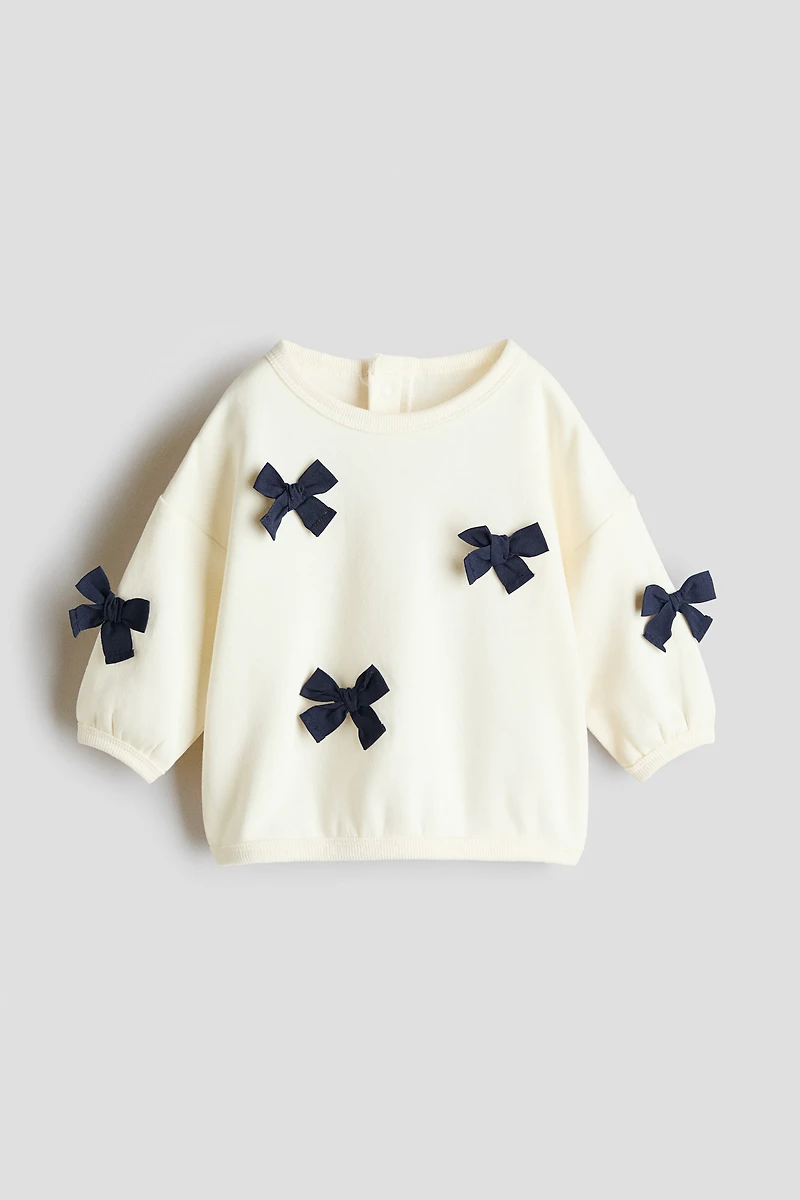 Top in sweatshirt fabric with a soft brushed inside and motif details. Round, rib-trimmed neckline, opening with press-studs at the back and low dropped shoulders. Finished with ribbed, narrow trims at the cuffs and hem.