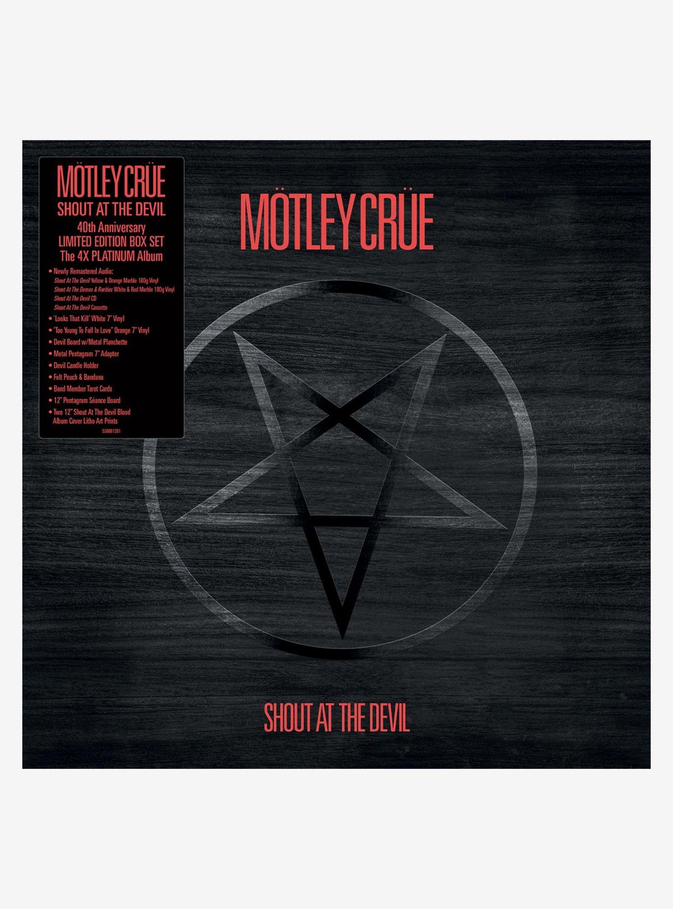 BMG announces YEAR OF THE DEVIL, a multi-configuration celebration of the 40th Anniversary of Mötley Crüe’s landmark 2nd album, SHOUT AT THE DEVIL. Originally released in 1983 at the height of the Satanic Panic, SHOUT AT THE DEVIL catapulted Mötley Crüe to superstardom. Delivering on the hype and promise of their PLATINUM debut, Too Fast For Love, Mötley Crüe’s second album hit the US Top 20 and was certified 4X PLATINUM. For many music fans, SHOUT AT THE DEVIL was the first time they witnessed an album with this imagery and lyrical content on mainstream retail shelves. FEATURES: Original Album Remastered on Orange/Yellow Splatter LP Shout At The Demos & Rarities Red/White Splatter LP Shout At The Devil CD Shout At The Devil Cassette “Looks That Kill” White 7” “Too Young To Fall In Love” Orange 7” Devil Board w/Metal Planchette Metal Pentagram 7” Adapter Pentagram Felt Bag Devil Candle Holder (candle not included) Band Member Tarot Cards 12” x 12” Pentagram Séance Board Two 12” x 12” Shout At The Devil Blood Album Cover Litho Art Prints Album Shout At The Devil (40th Anniversary Box Set) Audio Format: 5.1 Surround Aspect Ratio: 16x9 Widescreen Shout At The Devil (40th Anniversary Box Set)   TracksCredits - Disc 1 - 1 In the Beginning 2 Shout at the Devil (2021- Remaster) 3 Looks That Kill 4 Bastard 5 God Bless the Children of the Beast 6 Helter Skelter - Disc 2 - 1 Red Hot 2 Too Young to Fall in Love (2021- Remaster) 3 Knock 'Em Dead, Kid 4 Ten Seconds to Love 5 Danger - Disc 3 - 1 In the Beginning 2 Shout at the Devil (2021- Remaster) 3 Looks That Kill 4 Bastard 5 God Bless the Children of the Beast 6 Helter Skelter - Disc 4 - 1 Red Hot 2 Too Young to Fall in Love (2021- Remaster) 3 Knock 'Em Dead, Kid 4 Ten Seconds to Love 5 Danger - Disc 5 - 1 Shout at the Devil (Demo) [2023 Remaster] 2 Looks That Kill (Demo) [2023 Remaster] 3 Knock 'Em Dead, Kid (Demo) [2023 Remaster] 4 Too Young to Fall in Love (Demo) [2023 Remaster] - Disc 6 - 1 Hotter Than Hell (Demo for Louder Than Hell) [2023 Remaster] 2 I Will Survive (Demo) [2023 Remaster] 3 Black Widow (Demo) [2023 Remaster] 4 God Bless the Children of the Beast (Backwards Version) [2023 Remaster] - Disc 7 - 1 Too Young to Fall in Love (2021- Remaster) - Disc 8 - 1 Take Me to the Top - Disc 9 - 1 Looks That Kill - Disc 10 - 1 Piece of Your Action - Disc 11 - 1 In the Beginning 2 Shout at the Devil (2021- Remaster) 3 Looks That Kill 4 Bastard 5 God Bless the Children of the Beast 6 Helter Skelter 7 Red Hot 8 Too Young to Fall in Love (2021- Remaster) 9 Knock 'Em Dead, Kid 10 Ten Seconds to Love 11 Danger - Disc 12 - 1 Side B Item cannot be shipped to P.O. Boxes