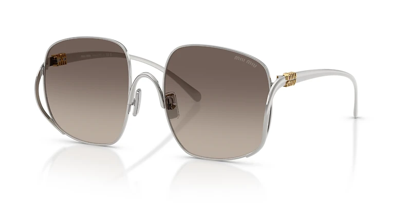 Make a bold statement with the Miu Miu MU A57S square sunglasses. These oversized frames boast sharp angles and a sleek silver finish that exudes modern sophistication. Crafted from lightweight metal, they feature gradient grey lenses for a touch of retro flair and advanced UV protection. Adjustable nosepads sunglasses ensure a comfortable, personalized fit, while the elegant metal temples add a graceful touch to the daring design. Perfect for those who love distinctively playful yet timeless style.