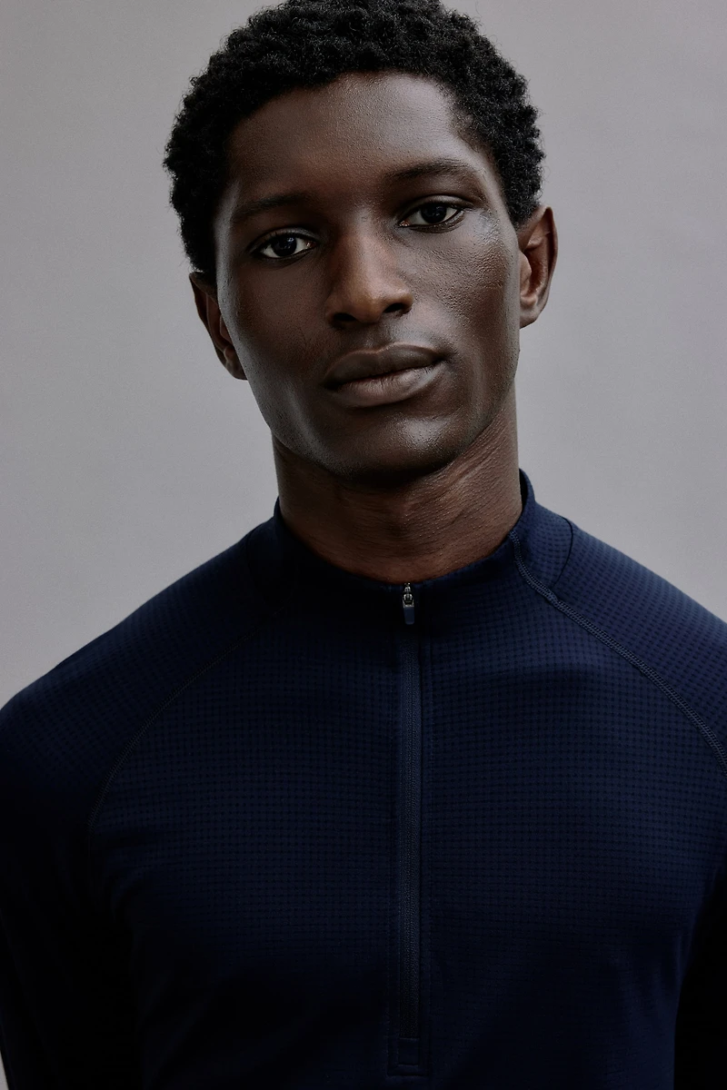 Sports shirt in functional fabric made with DryMove™ to wick away moisture from skin and keep you comfortably dry while moving. Stand-up collar, half-zip, and extra-long raglan sleeves. Muscle fit with narrow shoulders and tapered sleeves for a flattering silhouette.
