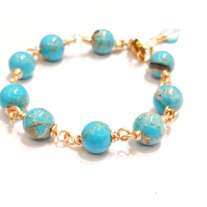 Natural Blue Golden Brown Turquoise Bracelet