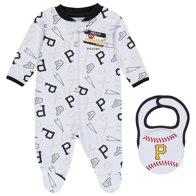 Newborn & Infant WEAR by Erin Andrews White Pittsburgh Pirates Sleep Play Full-Zip Footed Jumper with Bib