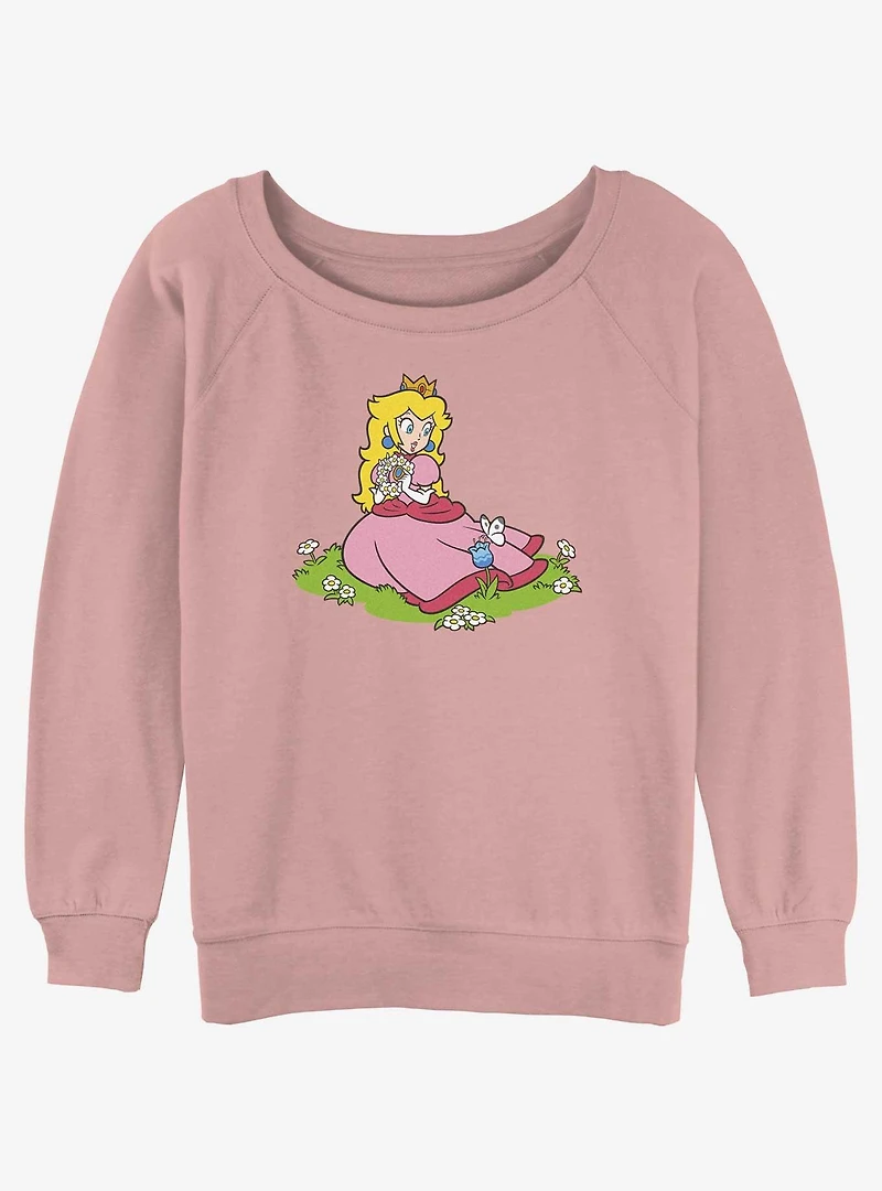 Nintendo Peach And A Butterfly Girls Slouchy Sweatshirt