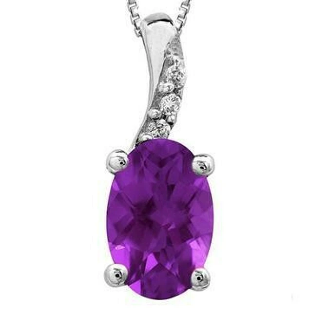 Oval Amethyst Pendant with Diamond Accent 14KT Gold