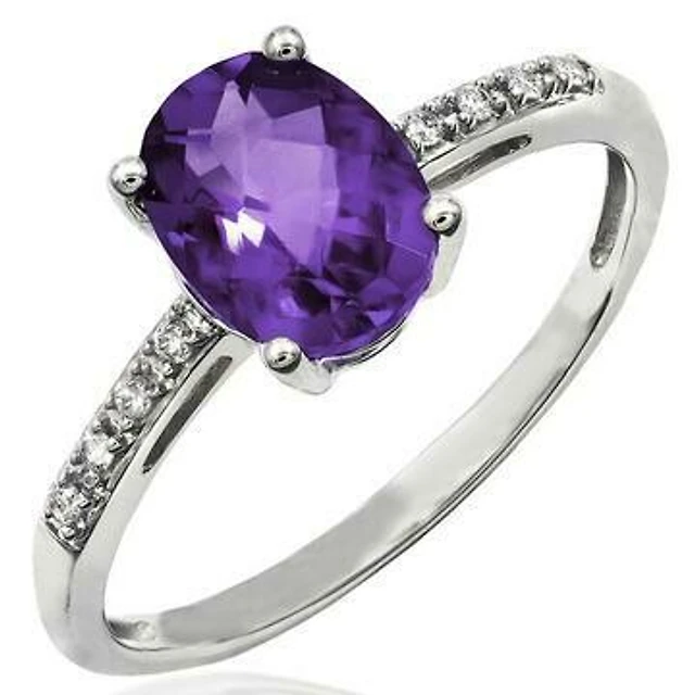 Oval Amethyst Ring with Diamond Accent 14KT Gold