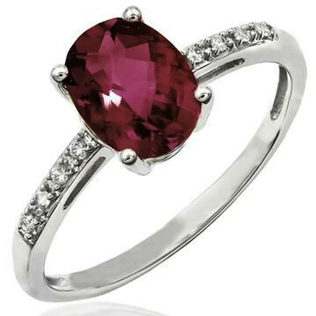 Oval Garnet Ring with Diamond Accent 14KT Gold