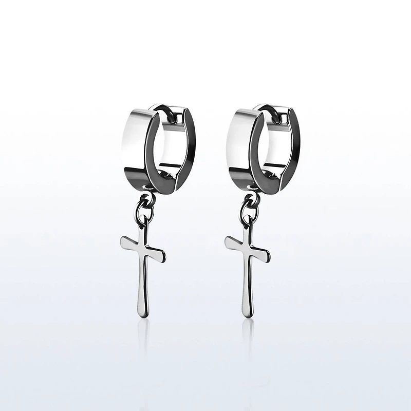 Pair of 316L Surgical Steel Dangling Cross Hoop Earrings in Brampton, ON