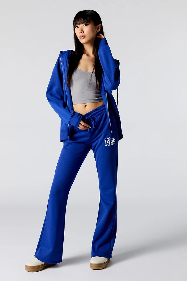 Pantalon d'entraînement à jambe évasée en molleton avec motif brodé