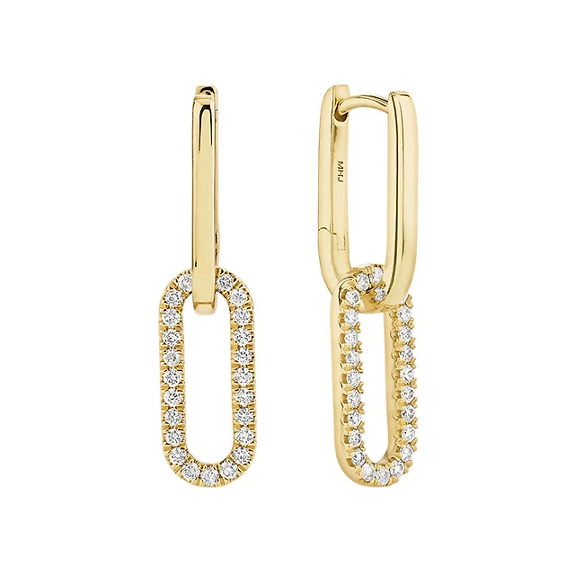 Paperclip Drop Earrings with 0.34 Carat TW of Diamonds in 10kt Yellow Gold