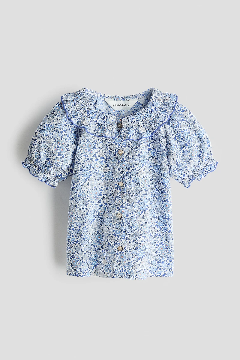 Blouse in soft, high-quality woven cotton with a sweet printed floral pattern and overlocked edges. Round neckline, ruffled collar, and buttons at front. Voluminous puff sleeves and ruffle-trimmed cuffs with narrow elastic. The H&M Adorables collection is a curated selection of high-comfort, quality pieces with a timeless appeal.