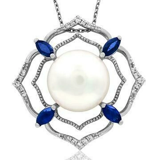 Pearl Pendant with Diamond and Gemstone Accent 14KT Gold